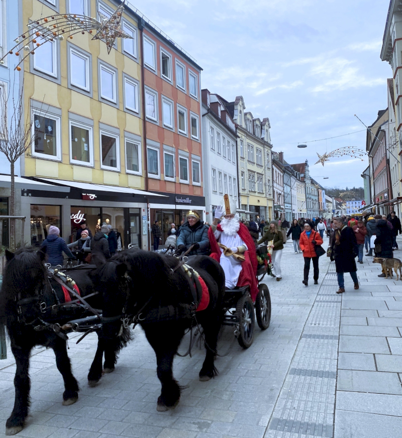 Der Nikolaus besucht die Innenstadt, hoffentlich mitsamt Pferdekutsche, und verteilt kleine Geschenke.